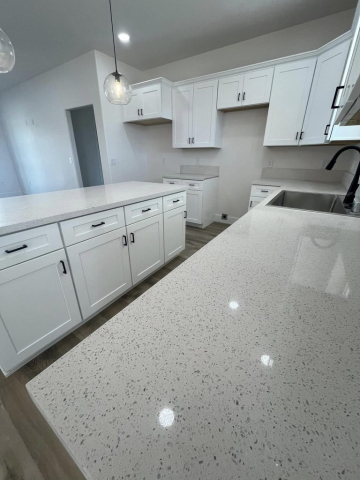Extras include: 9 ft ceilings, recessed lighting, quartz countertops, remote control fans, large kitchen island, brand new appliances, soft-close cabinets, water softener and reverse osmosis filter, mudroom/drop/desk area, extra large pantry with electrical for additional fridge/freezer, master suite with huge walk-in closet, cultured marble master shower, cement driveway, walkway, and covered front and back porches, finished garage, lots of outdoor outlets including under the eves for Christmas lights, plus wired for permanent outdoor lighting if desired