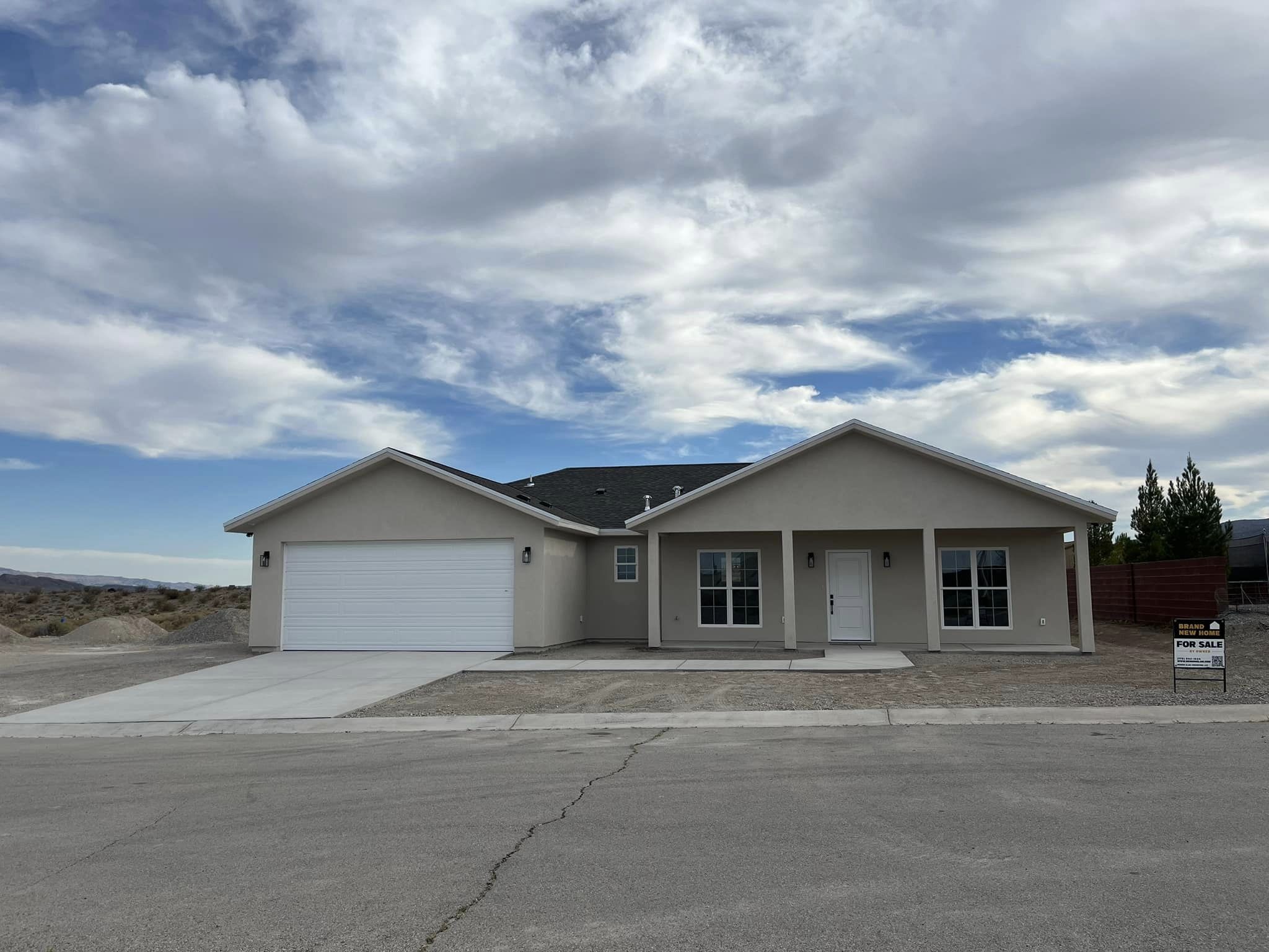 Key specs include: 1460 sq ft, 3 bedrooms, 2 bathrooms. Open layout, with maximum use of space, single-story home with a 2-car garage. 0.20-acre lot. Stucco exterior.